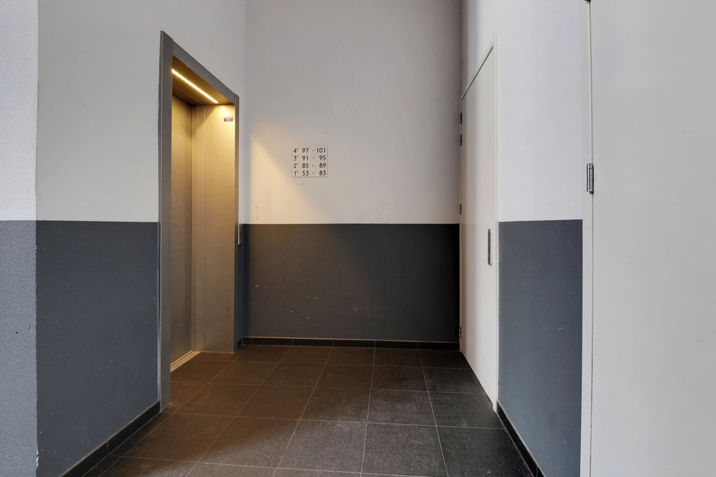 Afgesloten gezamenlijke entree met videofoon, brievenbussen, trappenhuis, lift en toegang tot de royale fietsenberging t.b.v. de bewoners.