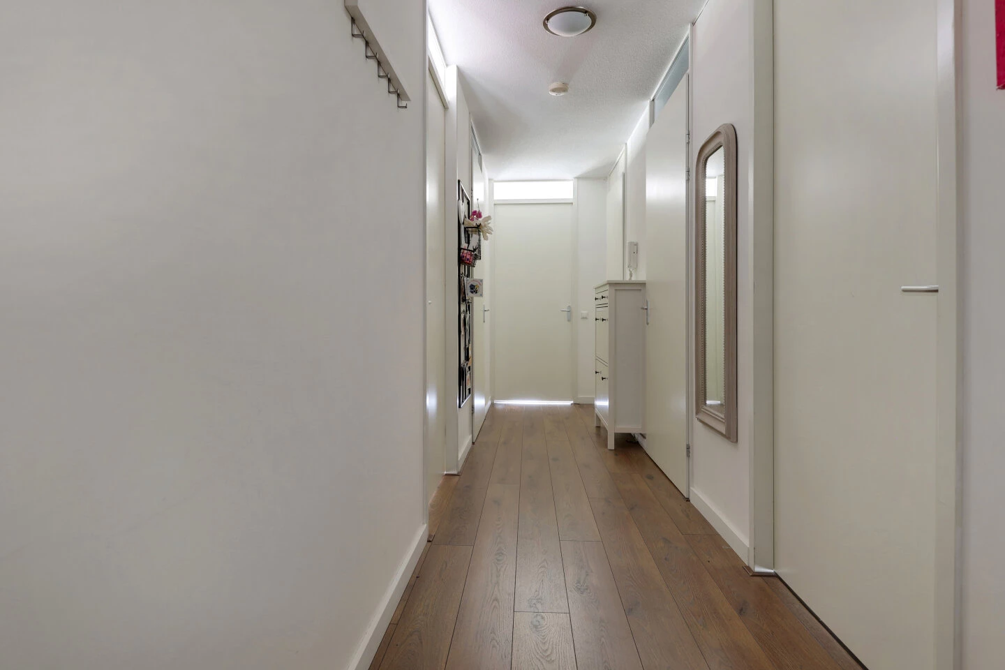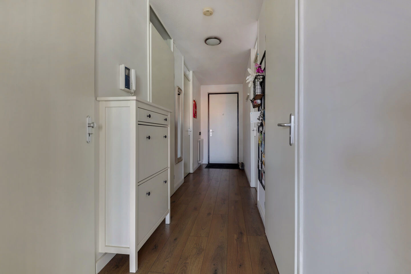 Via de hal kom je de woning binnen, separaat gedeeltelijk betegeld toilet met fonteintje en bergkast (met opstelling WTW en cv-ketel), twee slaapkamers, badkamer, woonkamer, open keuken en Frans balkon. In de lifthal van het appartement is de meterkast met wateraansluiting.