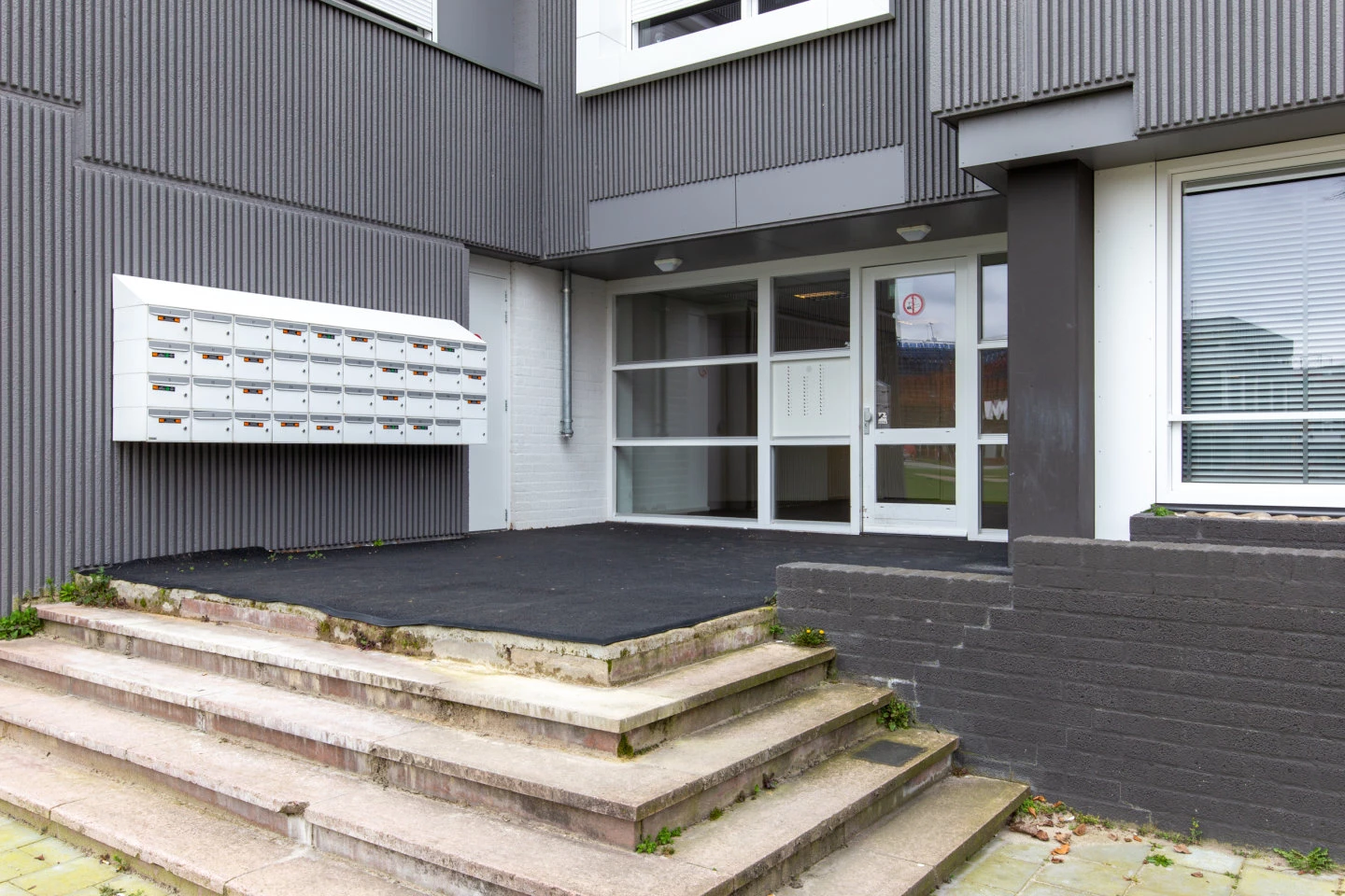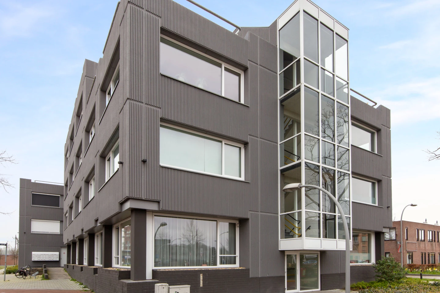 Gezamenlijke entree met intercom, brievenbussen, trappenhuis, gezamenlijke fietsenberging voor alle bewoners en de liftinstallatie.