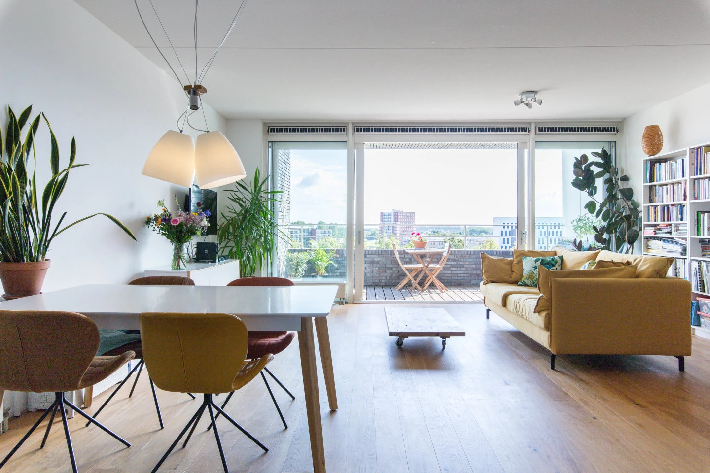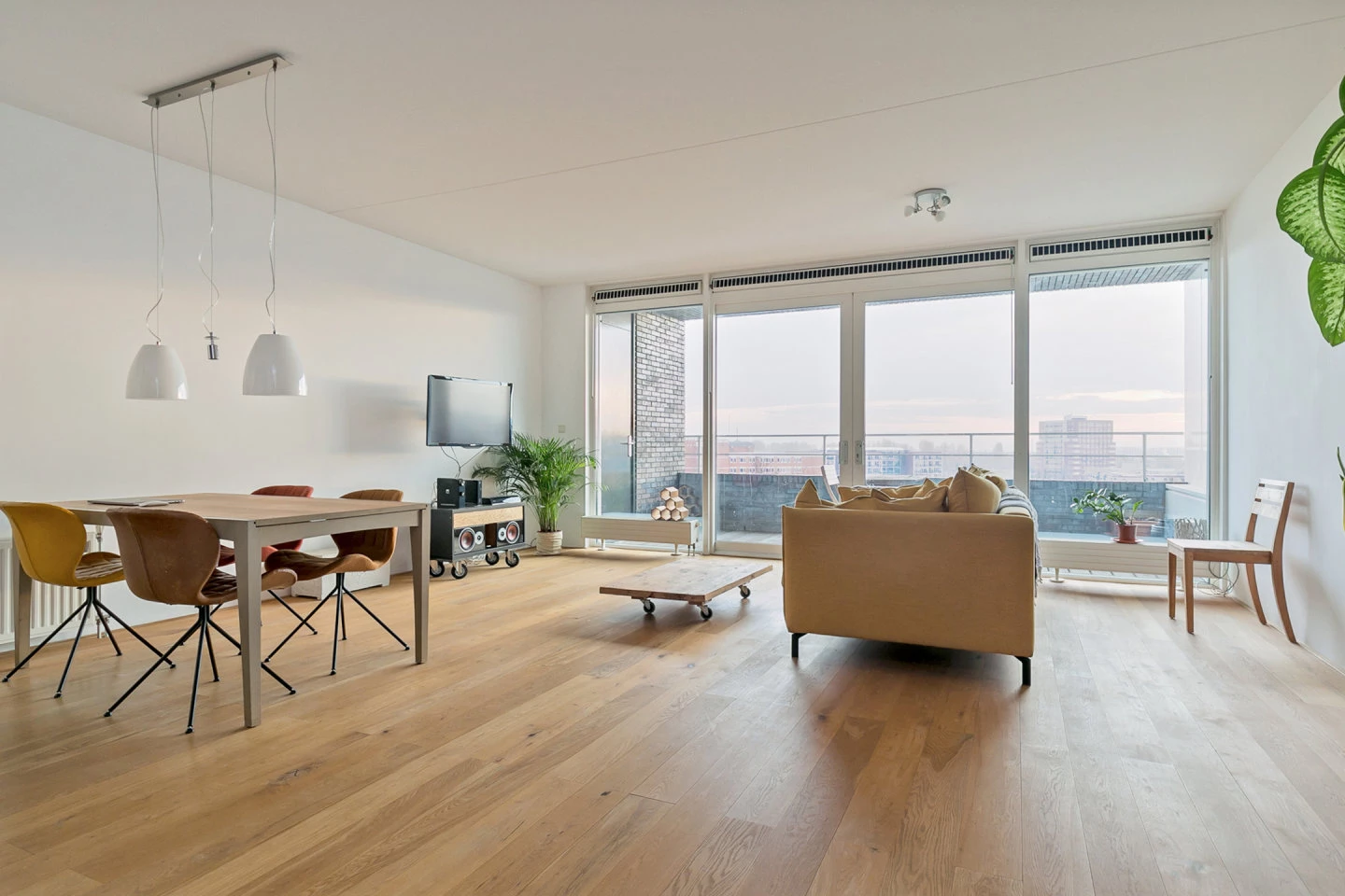 Het appartement is gelegen op de vijfde verdieping en heeft een op het zuiden gerichte royale woonkamer met een dubbele schuifpui naar het balkon. Vanuit de woonkamer heeft u een fantastisch vrij uitzicht over het Zilverpark.