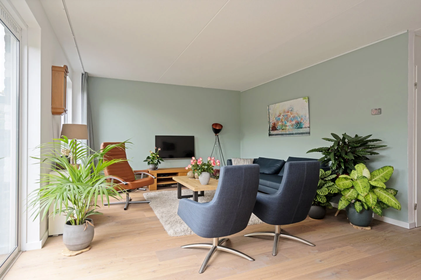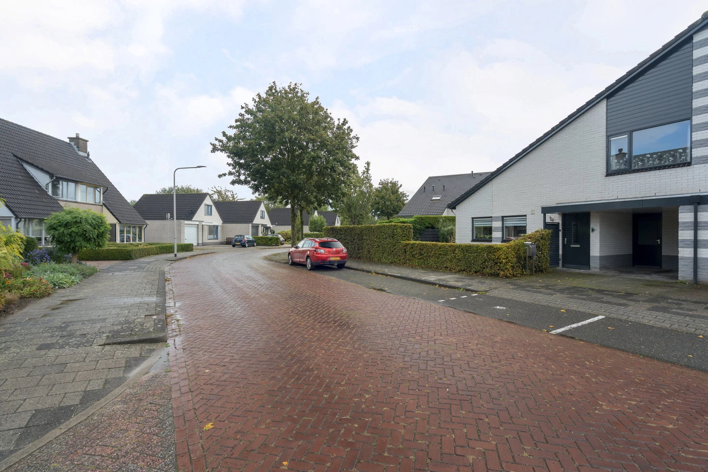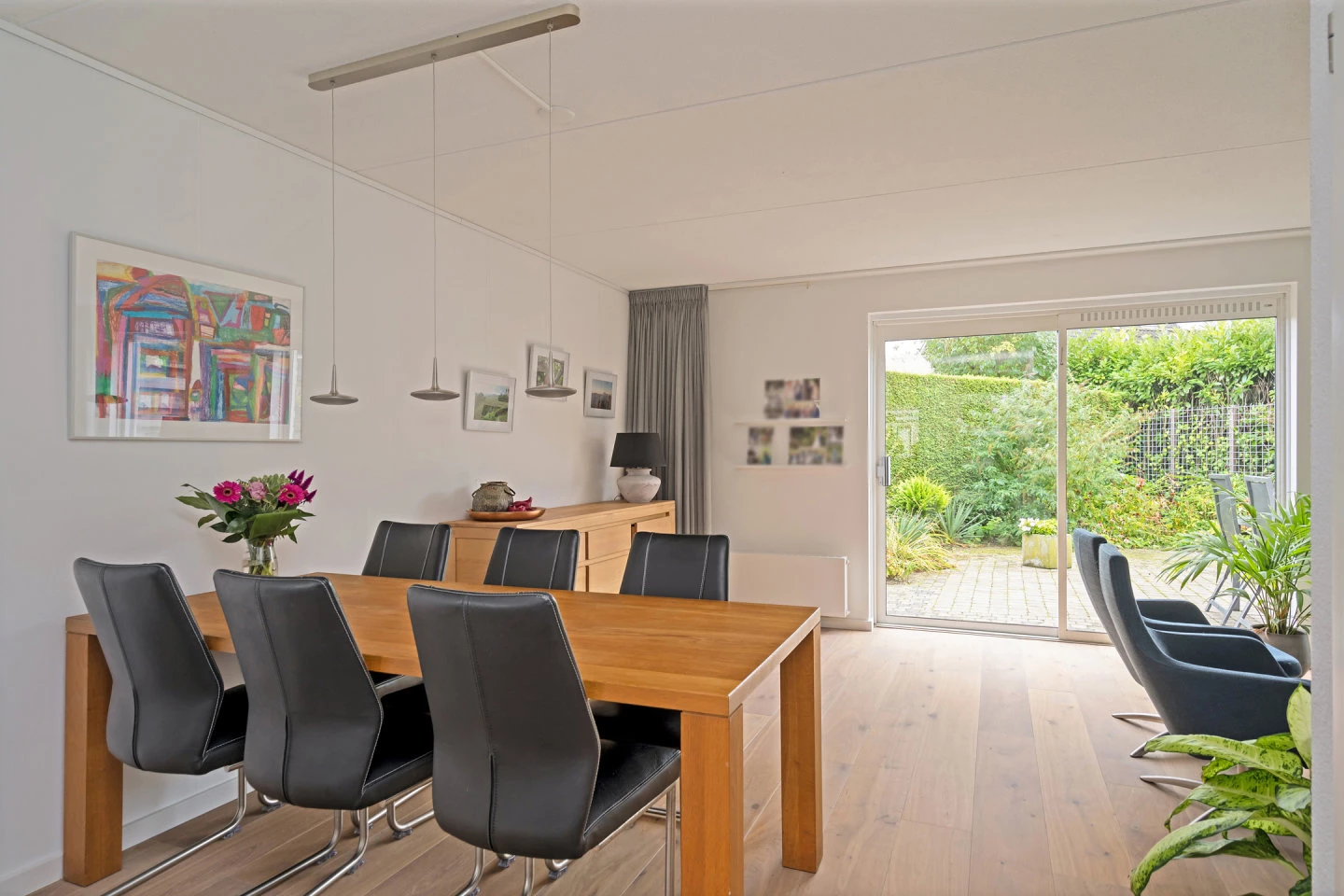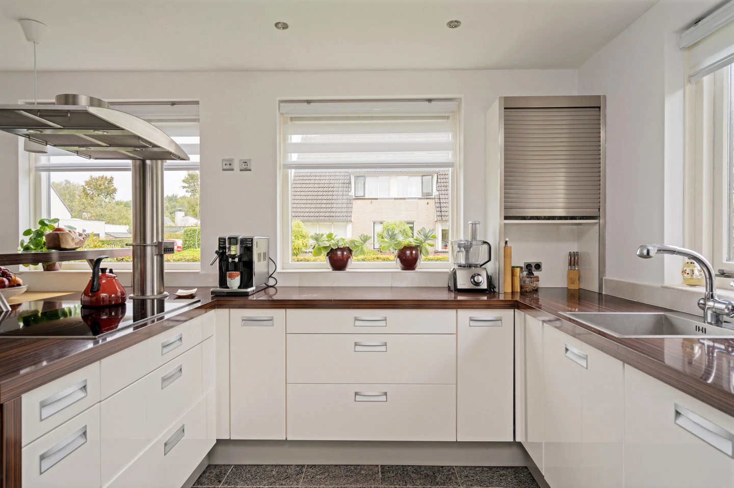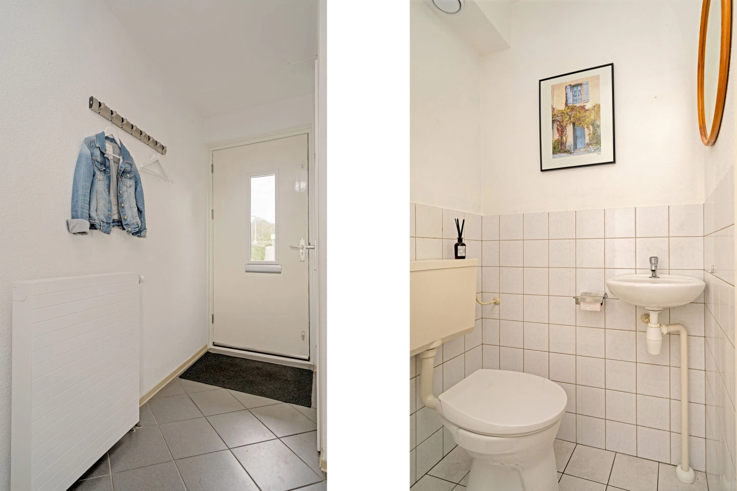 Via de inpandige carport komt u in de hal met meterkast en licht betegelde toilet met fonteintje. De moderne (vergrote) keuken in u-opstelling is aan de straatzijde gesitueerd en voorzien van een inductiekookplaat, afzuigkap, vaatwasser, combimagnetron en koelkast. Vanuit de keuken toegang tot de sfeervolle terrasoverkapping aan de zijkant van de woning. Ruime woonkamer voorzien van een parketvloer met schuifpui naar de achtertuin. De berging is te bereiken door een aparte ingang aan de voorzijde van de woning.