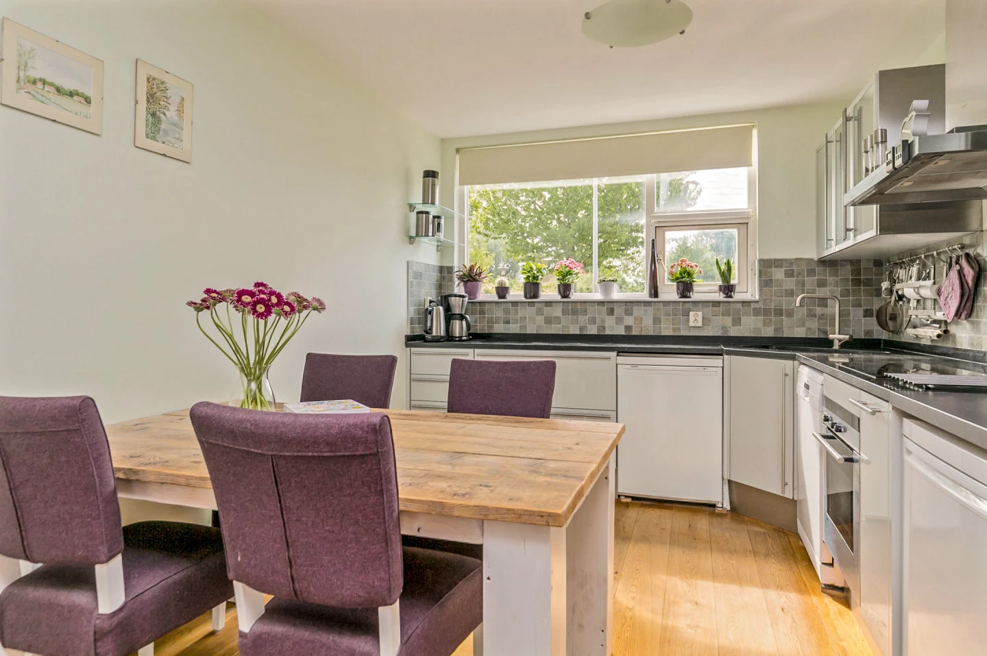 Entree, hal, meterkast en toiletruimte met fonteintje. De tuingerichte woonkamer is voorzien van grote raampartijen, een trapkast en lamelparket. De L-vormige keuken is onder andere voorzien van een RVS afzuigkap, een inductiekookplaat met oven en kickspace verwarming. De tuin is op het noordwesten gelegen en voorzien van losstaande berging en achterom. Mede door de diepte van de tuin (ca. 15 meter) heeft u bijna de gehele dag zon in de tuin.