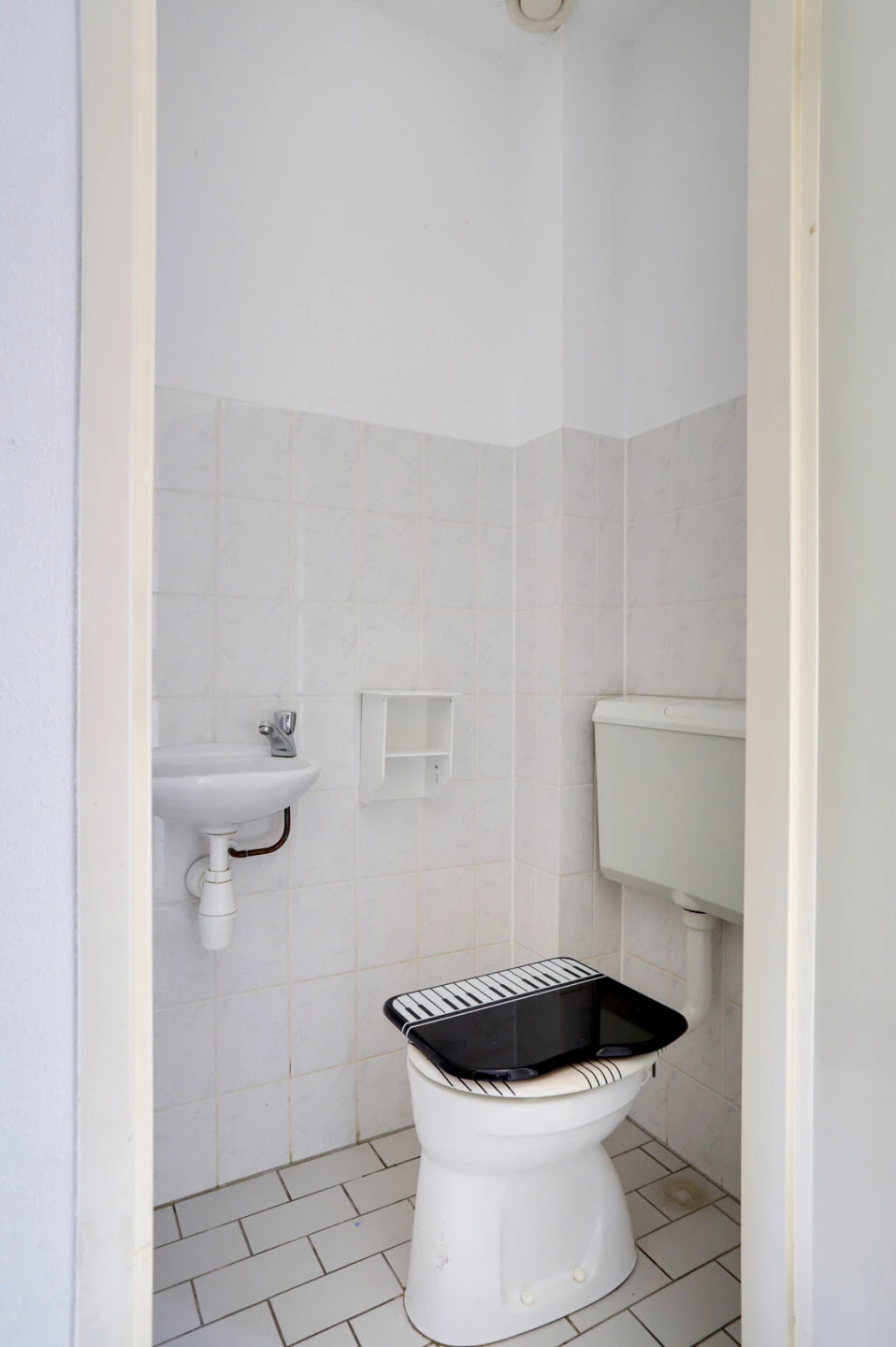 De badkamer is in 2020 vernieuwd en volledig betegeld. Er is een regendouche, zwevend toilet, wastafelmeubel en designradiator aanwezig. Praktisch is het raam dat voor extra daglicht en ventilatie zorgt.