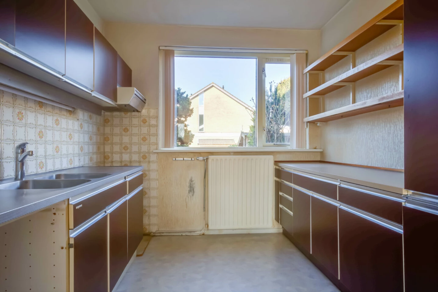 De standaard open keuken is aan de voorzijde geplaatst met aan beide zijde veel werk- en kastruimte. De keuken is voorzien van een afzuigkap en een koel-/vriescombinatie.