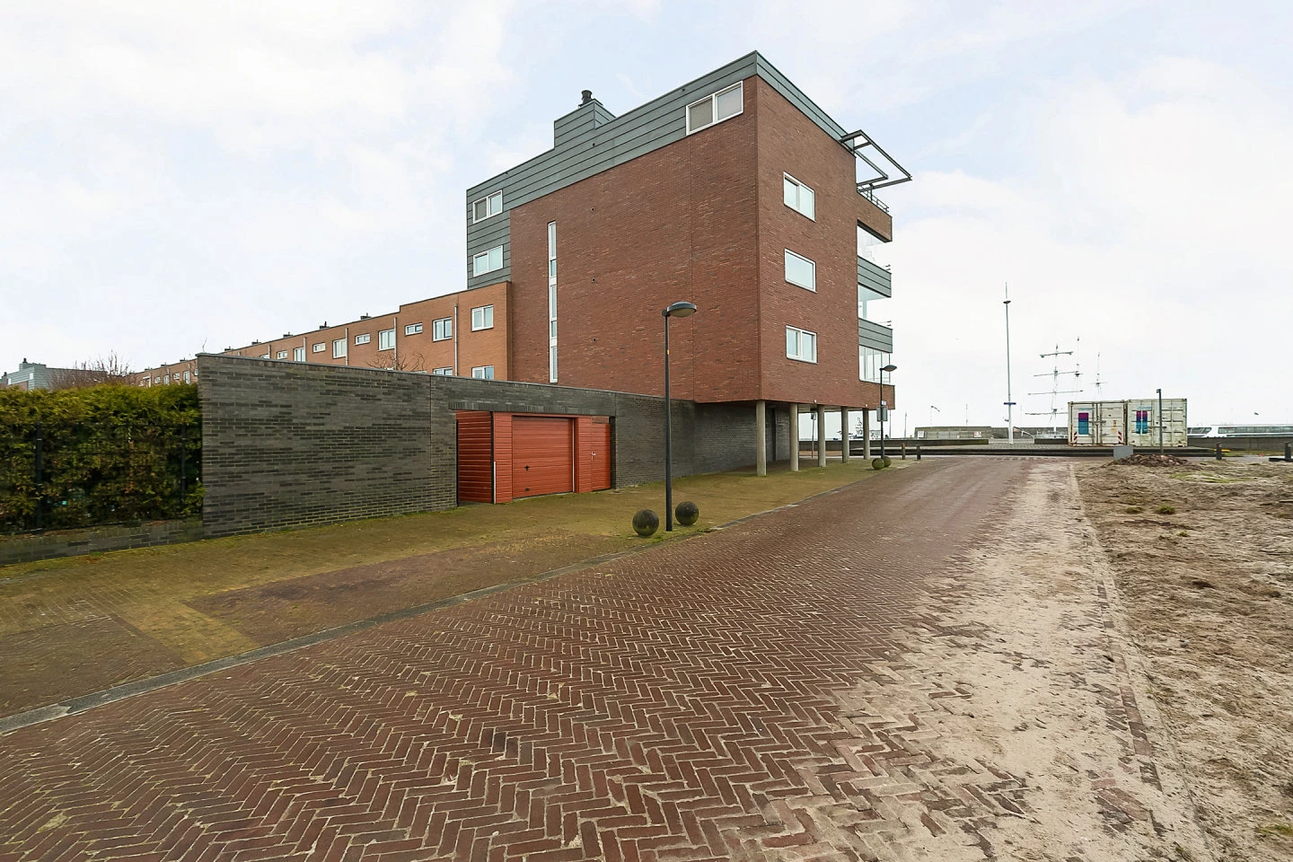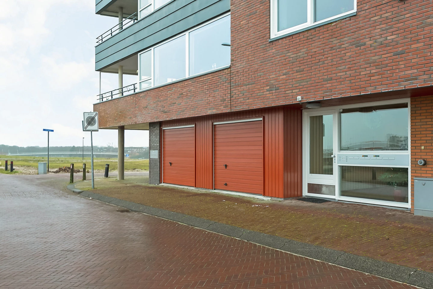 De voordeur met bellentableau en brievenbussen, vervolgens een ruime hal met deur naar de grote eigen garage voor maximaal 2 auto’s. Een deur naar het gezamenlijke buitenterrein aan de achterzijde met achteruitgang. Er is een trappenhuis en de lift brengt u naar het eigen etage/appartement. Elke etage is één appartement.