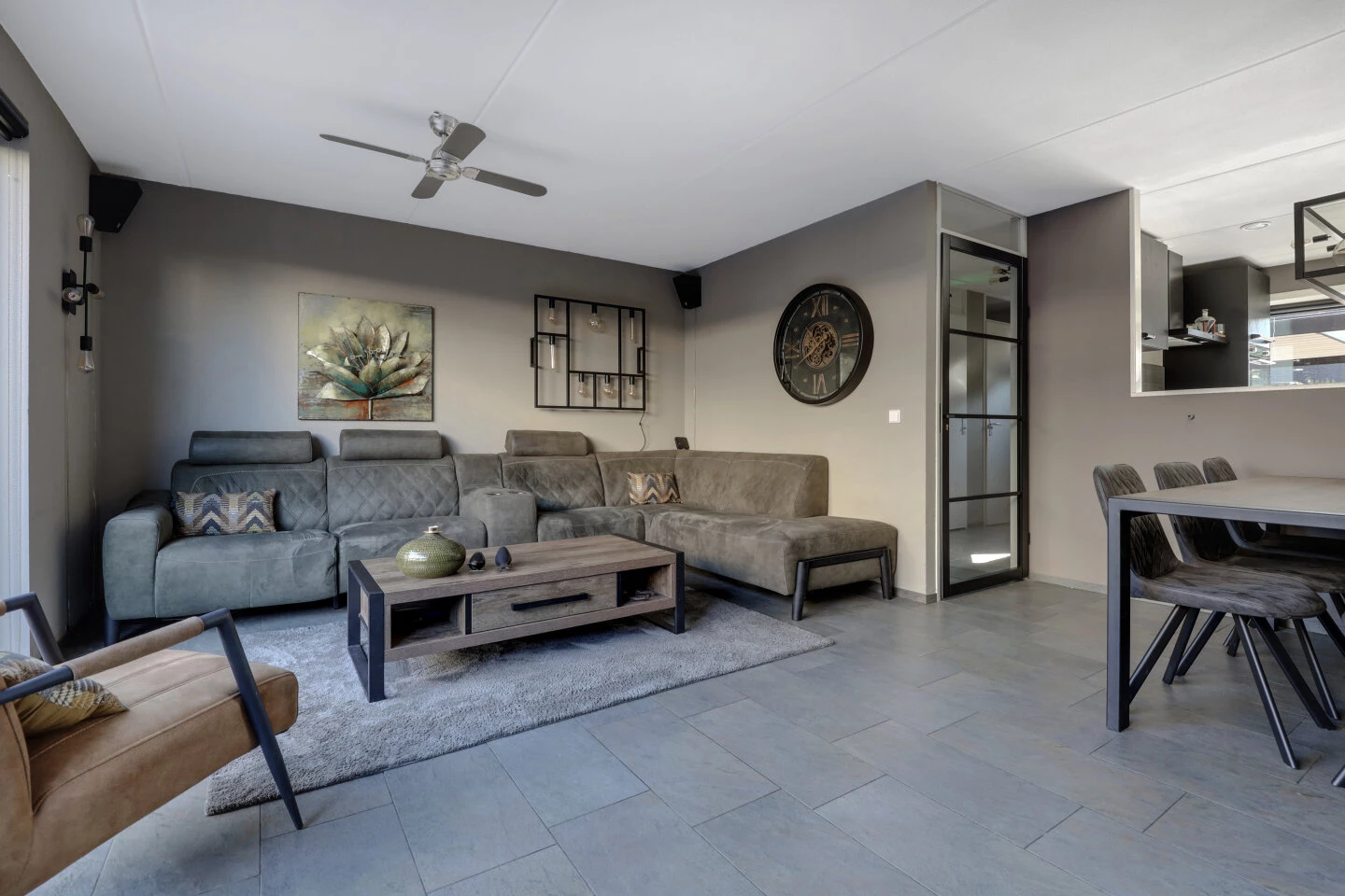 Aan de voorzijde bevindt zich de half open keuken, deze is in 2021 geplaatst en heeft veel opbergruimte. De keuken is uitgevoerd met een composiet aanrechtblad met gun-metal zwarte spoelbak en bijpassende kraan. Verder vindt je alle apparatuur die je nodig hebt zoals een combi stoommagnetron, oven, afzuigkap, vaatwasser, koel/vries combinatie en inductiekookplaat. Alles van het merk Pelgrim. Via de schuifpui kom je in de voortuin. waar het terras zich uitstekend leent voor een leuke zithoek en vanwaar je prettig vrij uitzicht hebt op de straat.