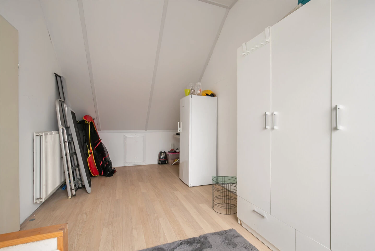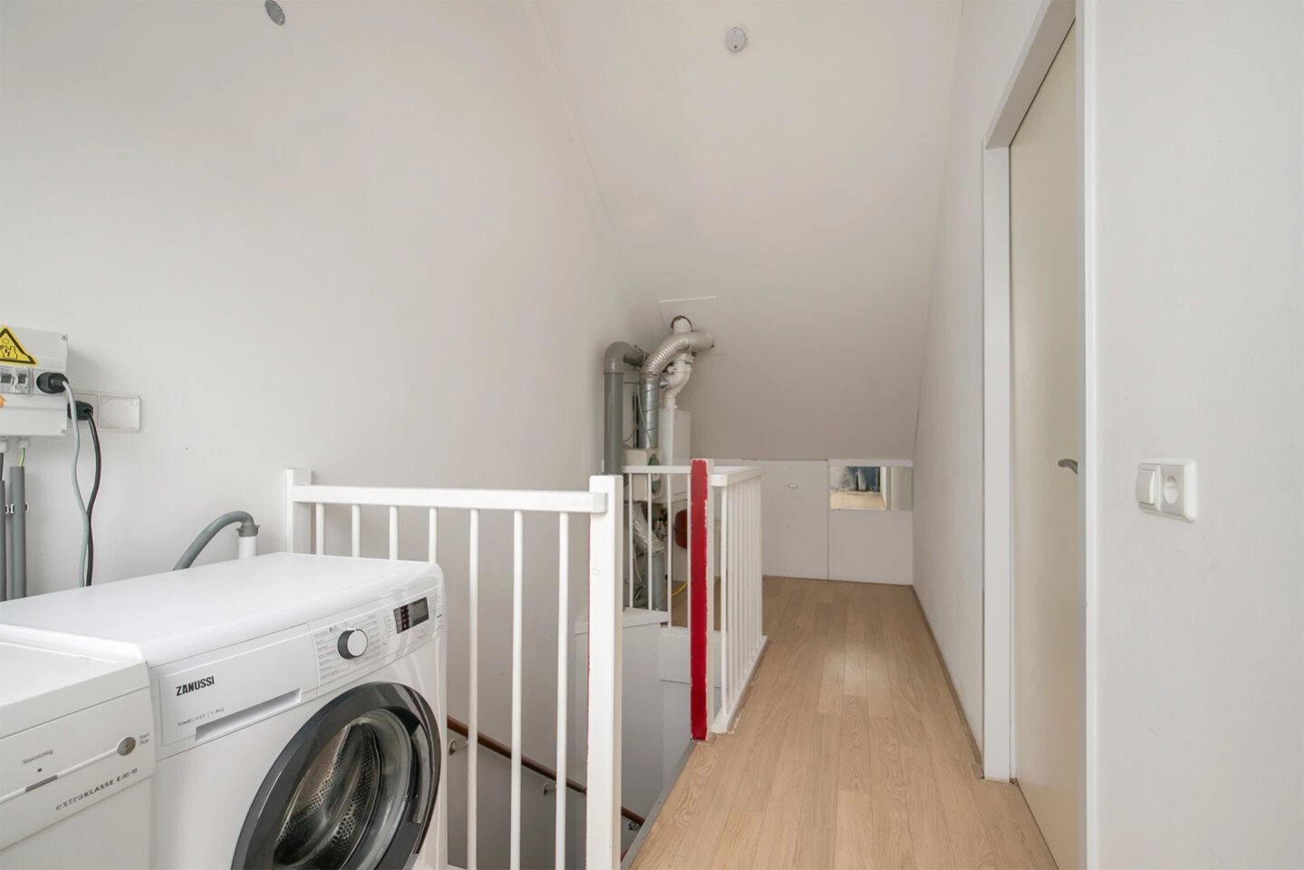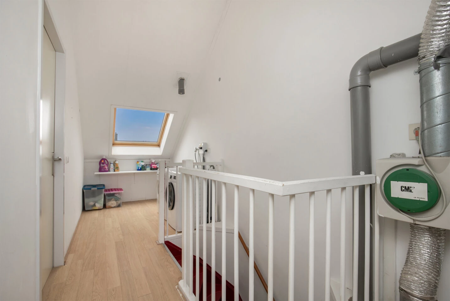 Ruime overloop met opstelplaats voor wasmachine en droger, de C.v.-installatie en mechanische ventilatie. Op deze verdieping bevindt zich nog een royale slaapkamer met en groot dakraam wat zorgt voor veel lichtvinval. De gehele verdieping is voorzien van een nette houtkleurige laminaatvloer.