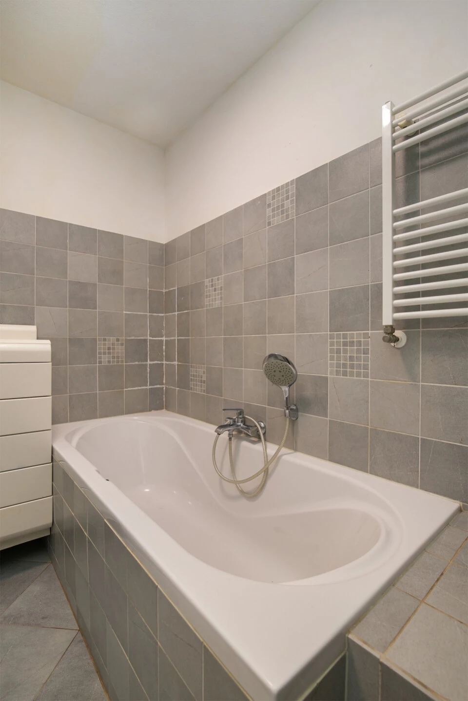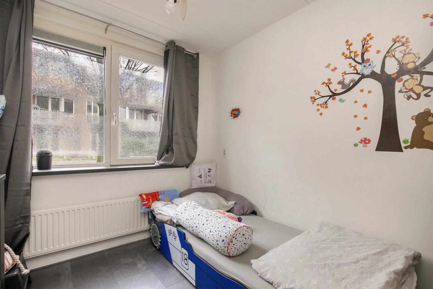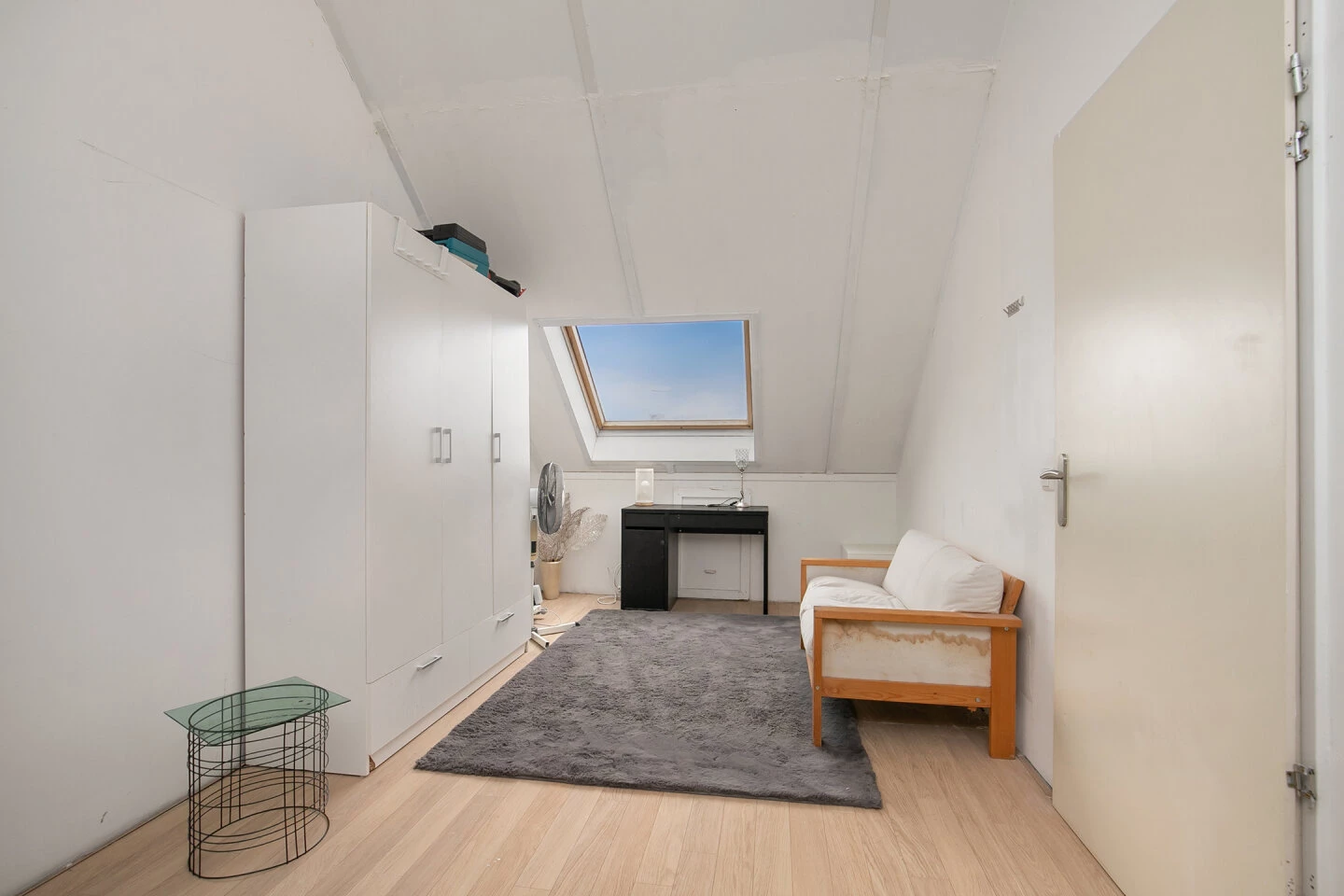 Ruime overloop met opstelplaats voor wasmachine en droger, de C.v.-installatie en mechanische ventilatie. Op deze verdieping bevindt zich nog een royale slaapkamer met en groot dakraam wat zorgt voor veel lichtvinval. De gehele verdieping is voorzien van een nette houtkleurige laminaatvloer.