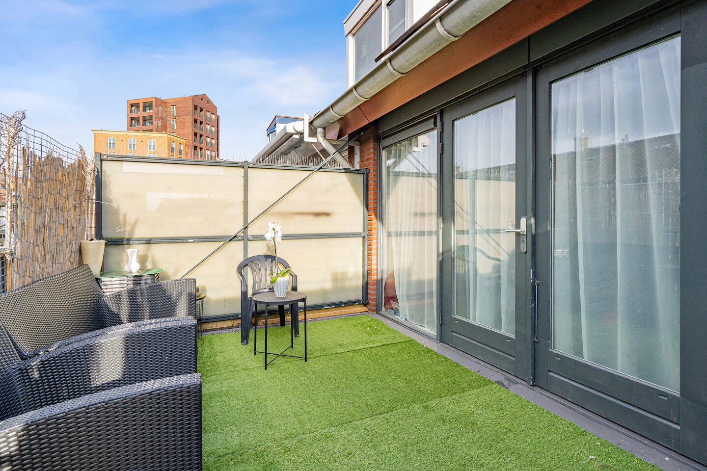 Het ruime zonneterras welke op het zuiden gelegen is voorzien van kunstgras, hier kan je tot in de late uurtje verblijven en genieten van het zonnetje.
