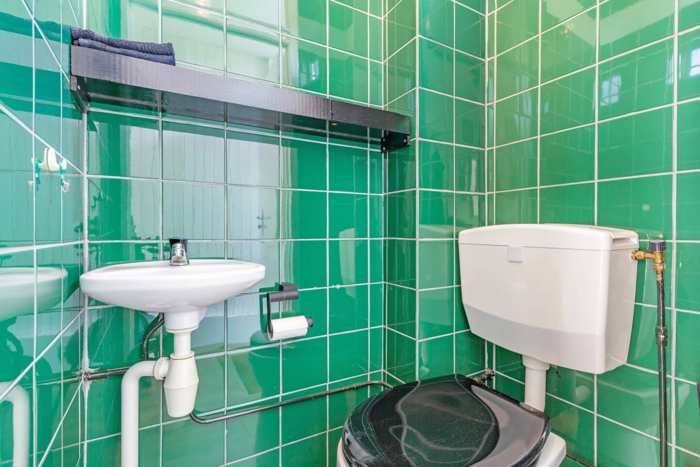 De badkamer is echt van deze tijd zoals deze vernieuwd is. Een douchecabine, zwevend toilet, dubbele wastafelmeubel en radiator maken de ruimte vervolgens compleet. Praktisch is het smalle raam dat voor extra daglicht en ventilatie zorgt.