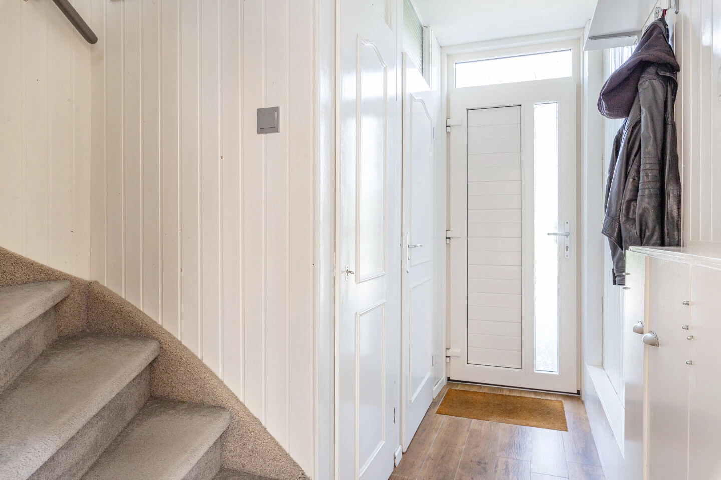 Je betreedt de woning via de entree met toegang tot de geheel betegelde toiletruimte met fonteintje (deze verdiend echt nog wat liefde), meterkast, trapopgang, trapkast en woonkamer. De gehele begane grond is voorzien vloerverwarming en plavuizen.