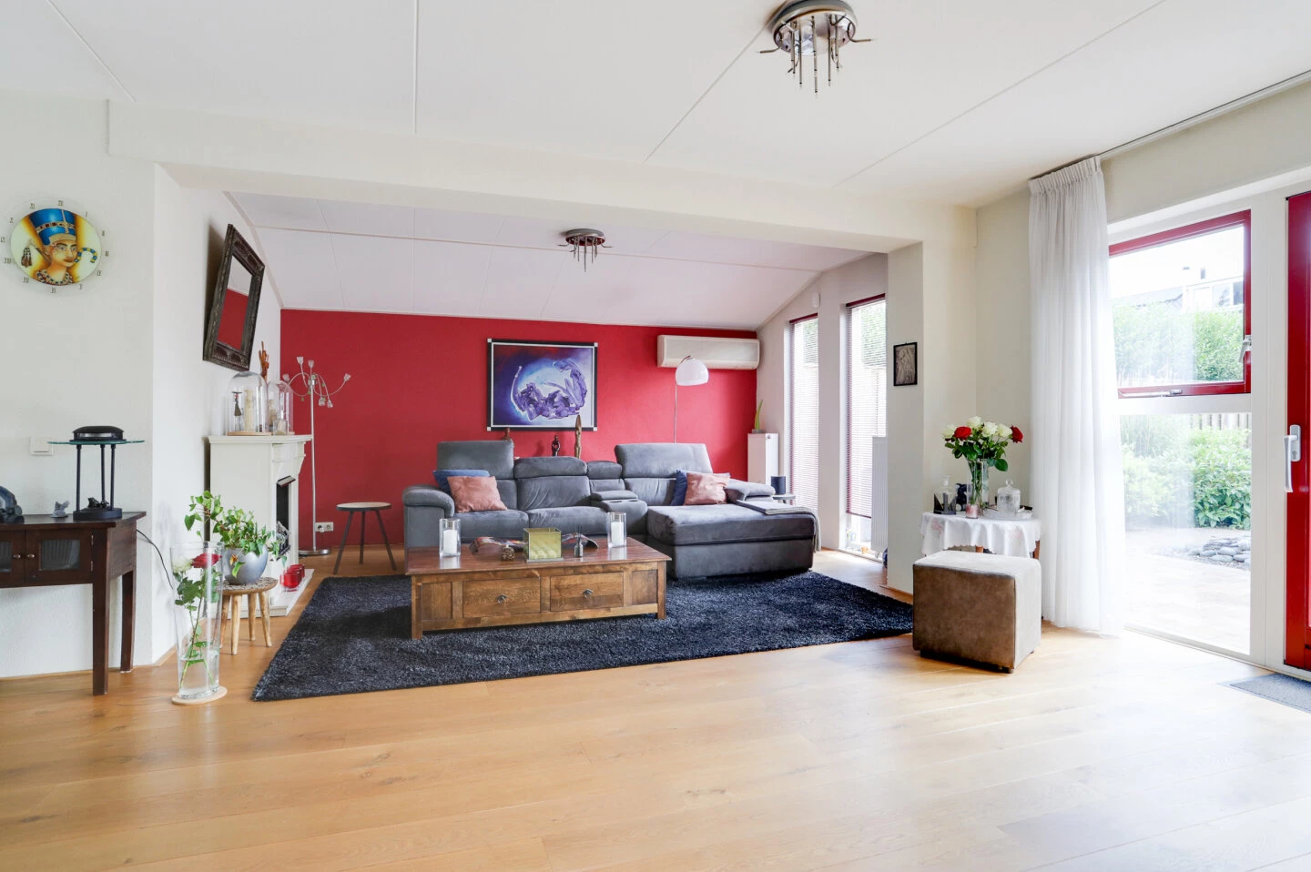 Je betreedt de woning via de ruime entree hier is de meterkast en de geheel betegelde toiletruimte met fonteintje. In de woonkamer tref je een halletje met trapopgang en extra bergruimte in de trapkast. De woonkamer is ruim en smaakvol ingericht en voorzien van een eiken parketvloer en airco. Door de grote raampartij is de woonkamer licht en heb je zicht op de mooie tuin. De tuin is te betreden via de schuifpui en ligt op het oosten. Aan de voorzijde bevindt zich de half open moderne keuken, deze is heerlijk ruim en licht door de raampartij. Je vindt hier veel werk en opberg ruimte. De keuken is voorzien van alle moderne inbouwapparatuur zoals inductie kookplaat, kokend waterkraan van het merk Inventum), combimagnetron, afzuigkap, koel/vriescombinatie en vaatwasser.