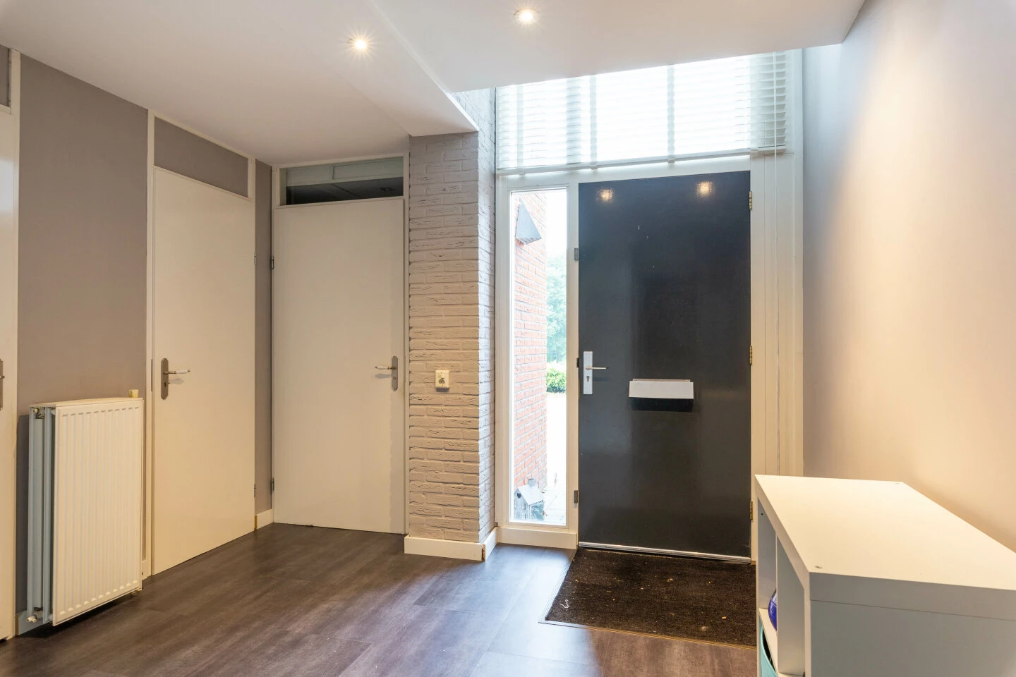 Op deze verdieping kom je de woning binnen en hier is de hal met toilet en tevens toegang tot de berging met wasruimte en de garage met elektrische deur.
