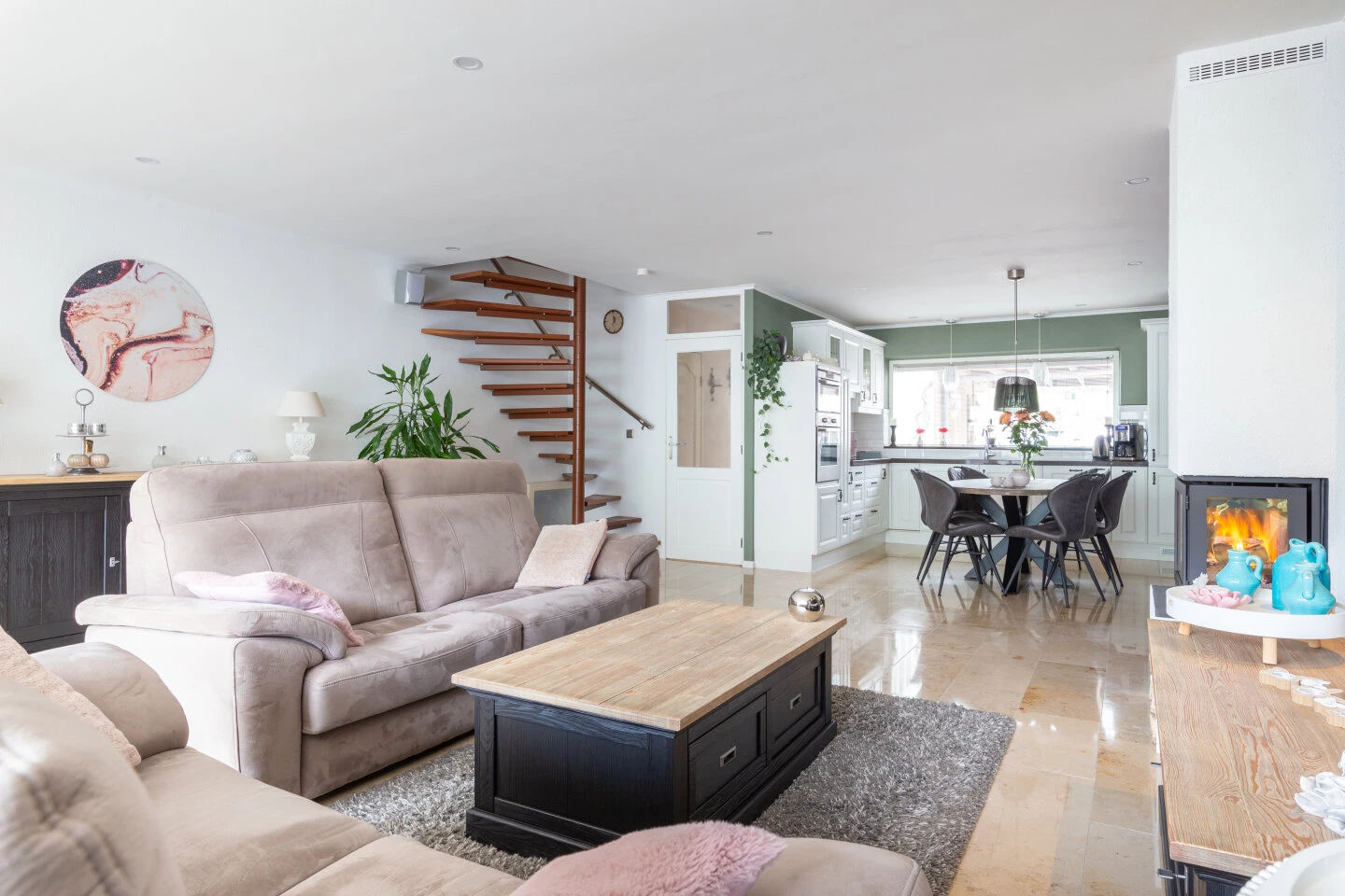 Via de woonkamer ga je met een vaste trap naar de eerste verdieping.