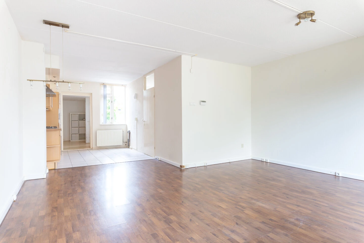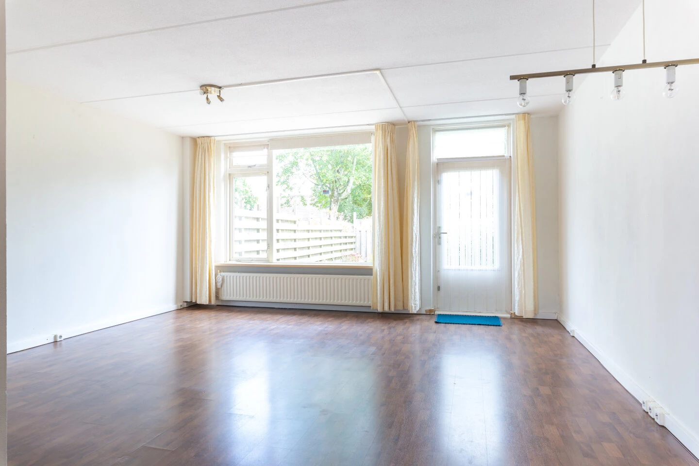 De ruime woonkamer is een ruime leefruimte met heel veel licht door de grote raampartij en zicht op gezellige tuin welke bereikbaar is door middel de loopdeur.