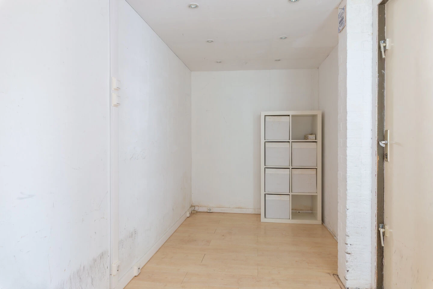 De entree vanuit de voortuin, met eigen parkeerplaats en zowel van binnenuit en buitenaf bereikbare berging. Binnenkomst in de hal met toegang tot de geheel betegelde toilet met fonteintje, meterkast, woonkamer, trapkast en trapopgang naar de verdieping.