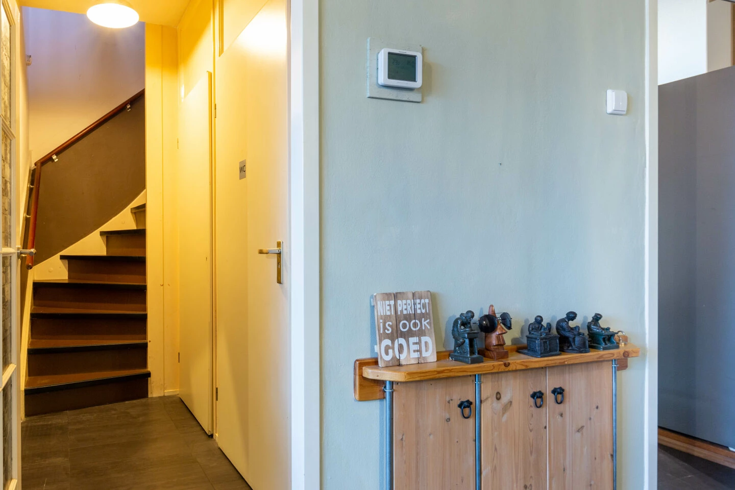 Aan de achterzijde van de woning tref je nog een slaapkamer. Op de overloop is er een kast gemaakt waar je de wasmachine en droger hebt.