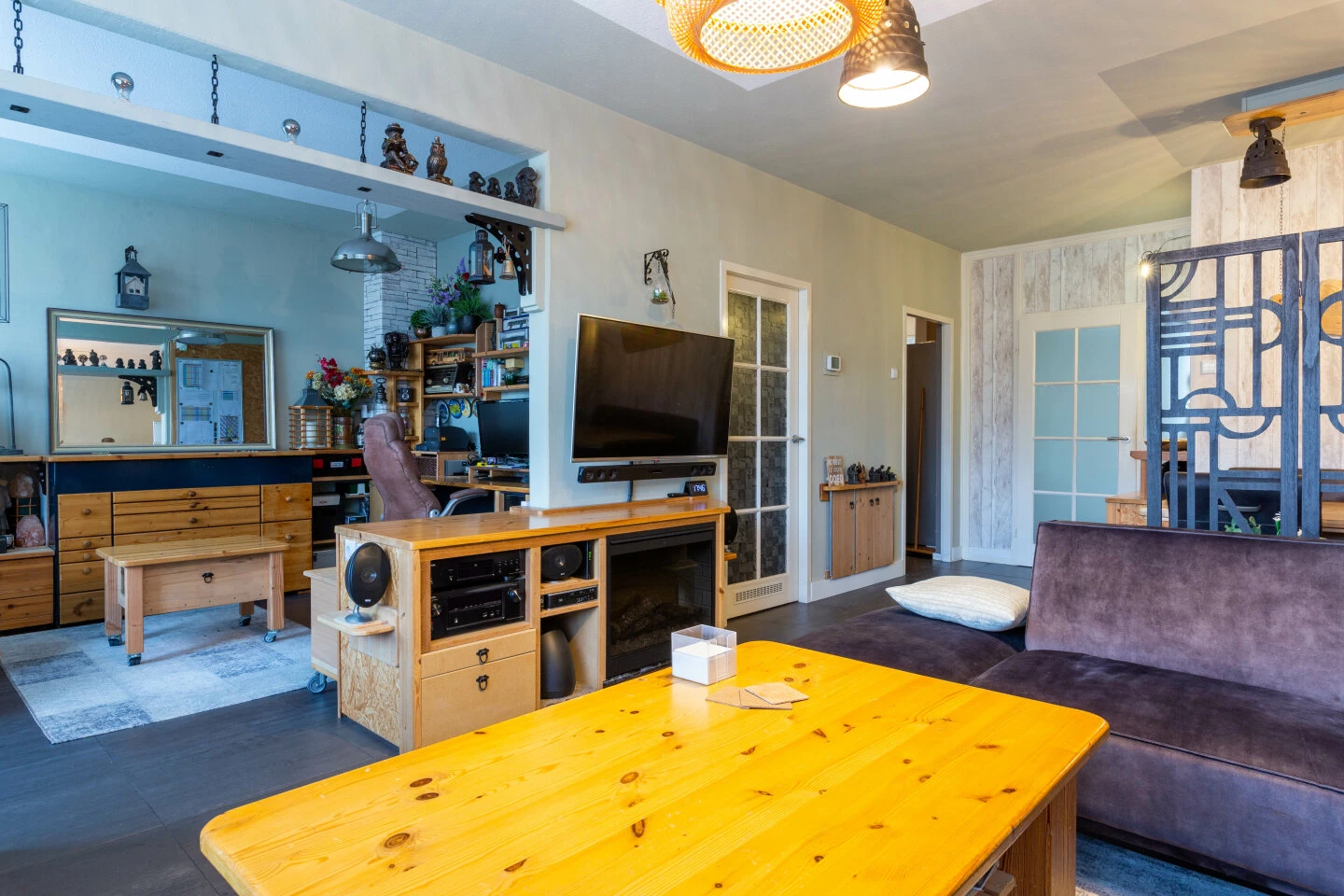 Entree, hal, berging, meterkast, provisie kasten, woonkamer, hal, trapopgang, toiletruimte met hangend toilet en provisiekast. De woonkamer is gezellig ingericht met heel veel licht door de grote raampartij en zicht op de gezellige tuin welke bereikbaar is door middel van de tuindeur. Aangrenzend aan de woonkamer tref je nog een ruime kamer welke nu als kantoor is ingericht, hier kun je met gemak je eettafel kwijt. De gehele begane grond is voorzien van een plavuizen en lichte wanden.