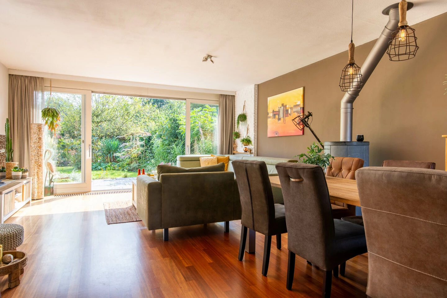 De woonkamer is een sfeervolle leefruimte met heel veel licht door de grote raampartij en zicht op de groene tuin welke bereikbaar is door middel van de schuifpui. In de woonkamer is een sfeervolle speksteen kachel geplaatst waar je in de wintermaanden heerlijk kunt genieten met een drankje.
