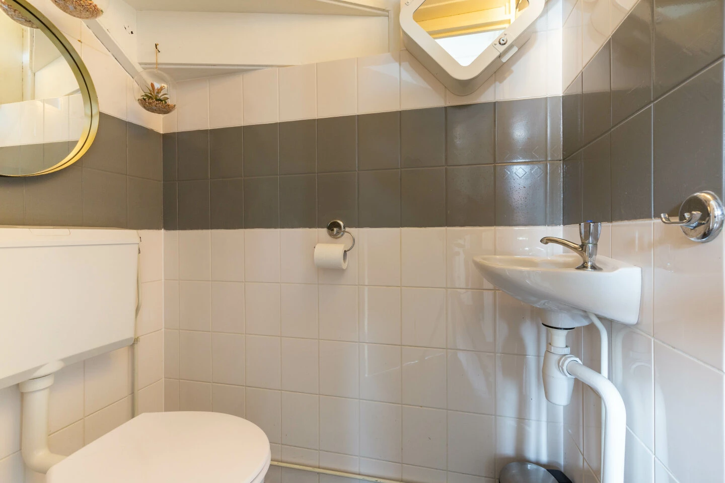 De eerste verdieping beschikt over 2 ruime slaapkamers, een aparte werkkamer welke is gesitueerd op de overloop en de badkamer. Op de overloop is een vide. Beide slaapkamers zijn groot, de slaapkamer aan de voorzijde kijkt uit op het balkon en de andere slaapkamer ligt aan de achterzijde van de woning. De werkkamer bereik je vanaf de overloop en deze heeft toegang tot het balkon aan de voorzijde van de woning. De badkamer is in 2018 geplaatst, compleet betegeld en van alle gemakken voorzien zoals een inloopdouche met stortdouche, toilet, dubbele wastafel met meubel en designradiator. Er is een raam voor natuurlijke ventilatie. Op de gehele verdieping ligt een lichte laminaat vloer.