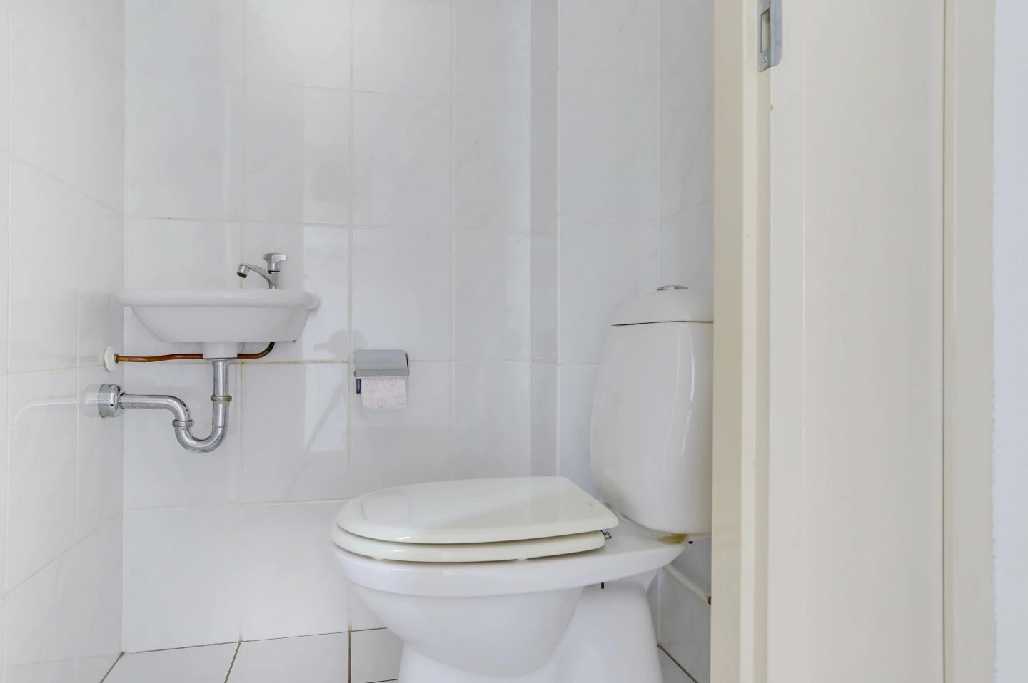 De badkamer is verzorgd en compleet. De vloer en wanden zijn voorzien van lichte tegels. De douchecabine, ligbad, toilet en wastafel maken de ruimte vervolgens compleet. Praktisch is het raam dat voor extra daglicht en ventilatie zorgt.