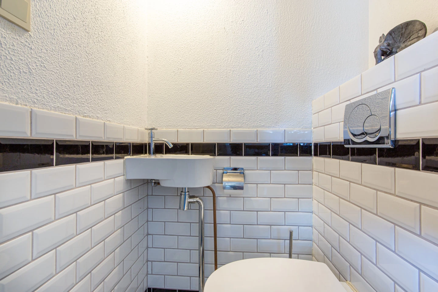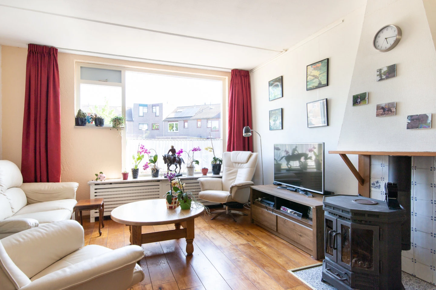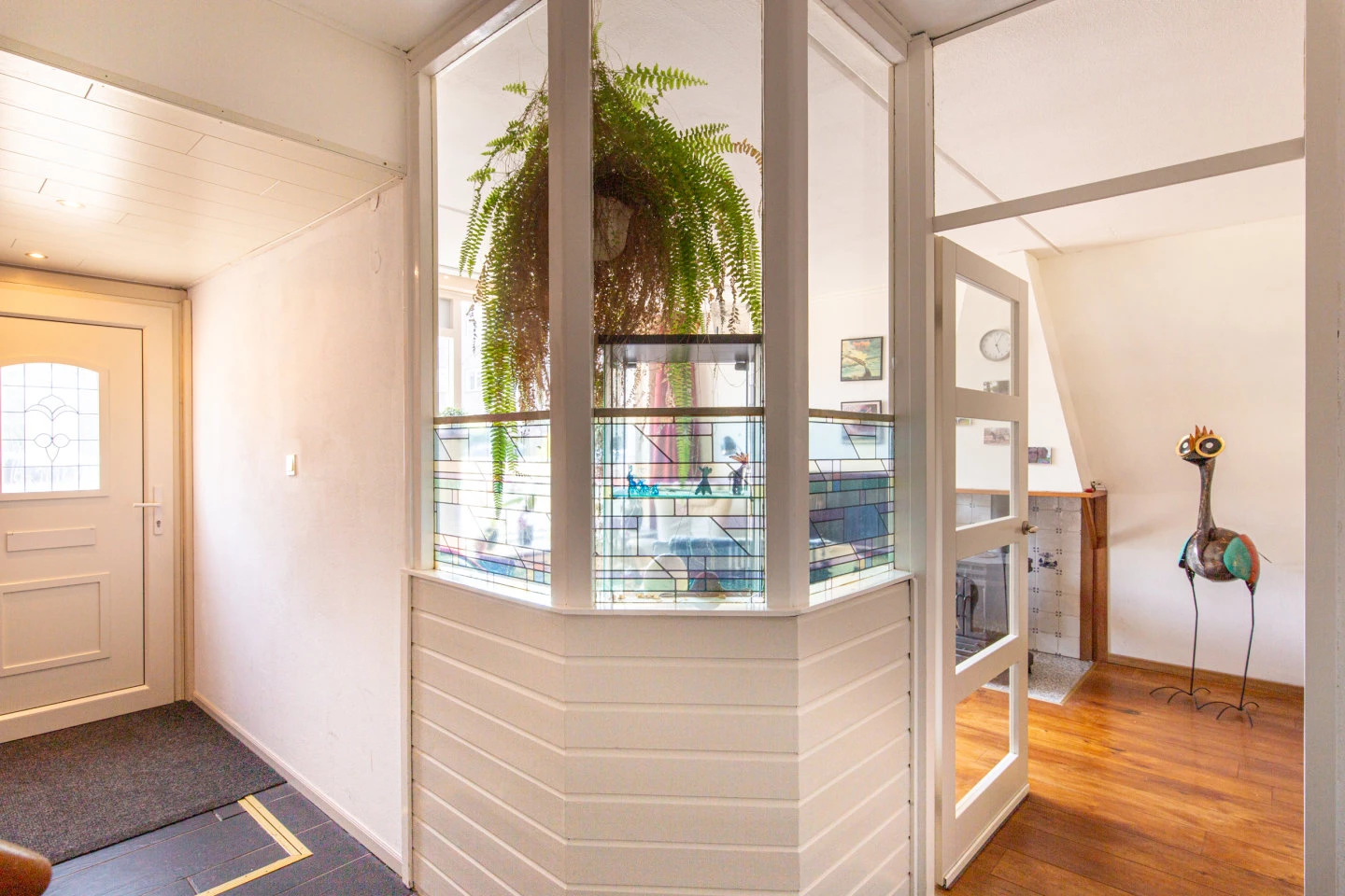 Entree, lichte hal, meterkast en toiletruimte met vrij hangend toilet en fonteintje. Gezellige tuingerichte eetkeuken met ruime opstelmogelijkheden voor grote eettafel. De keuken is voorzien van diverse inbouwapparatuur: combi magnetron, vaatwasser en inductiekookplaat. De straatgerichte woonkamer is voorzien van een nette houten vloer en heeft aan de buitenkant een zonnescherm.