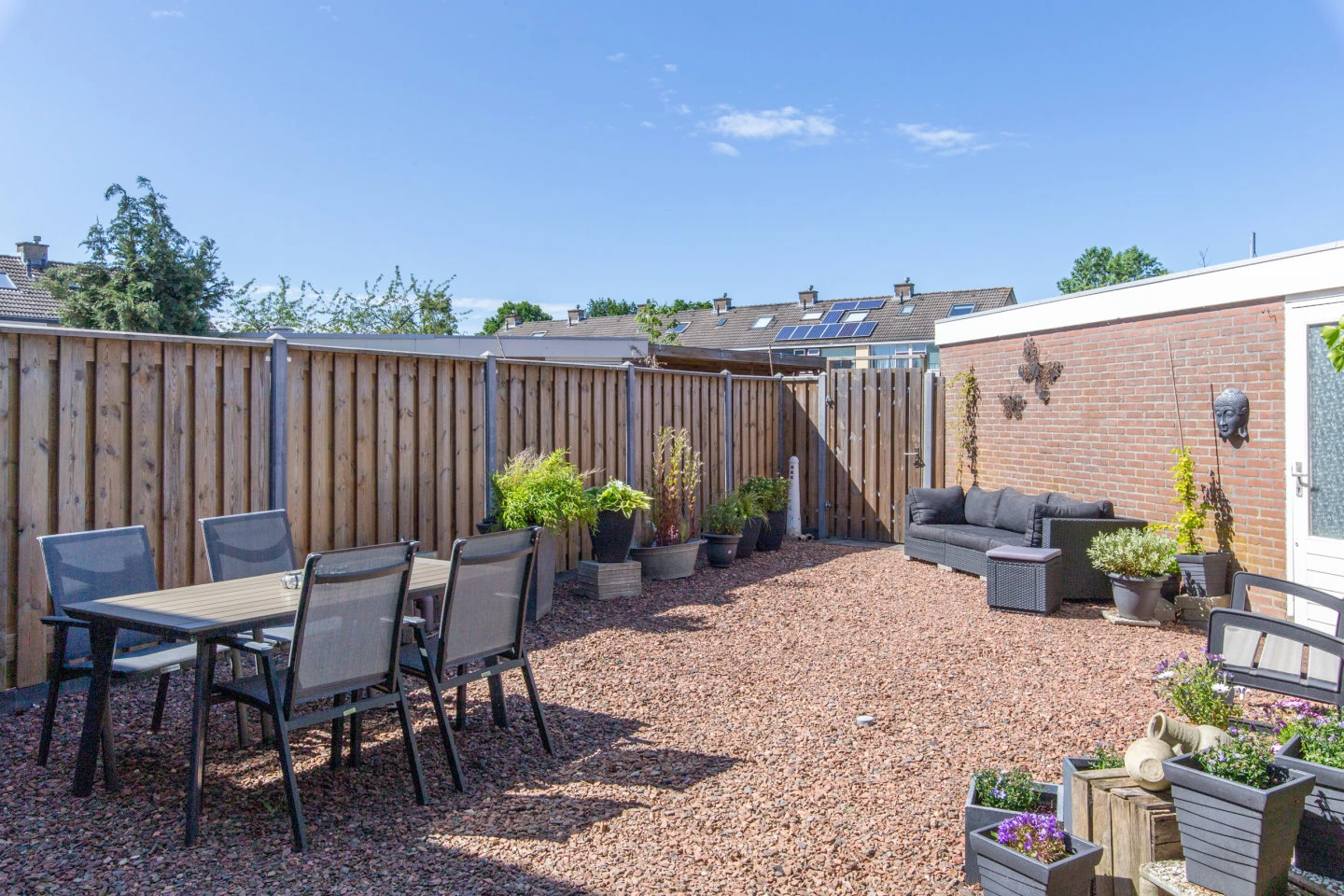 Achter de woning ligt een heerlijke onderhoudsarme en beschutte tuin. Schutting linkerzijde recent geplaatst met afsluitbare deur.