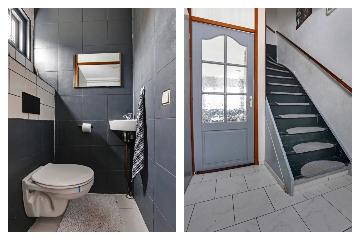 De badkamer is netjes en in lichte kleurstelling. De douchecabine, zwevend toilet en wastafelmeubel maken de ruimte vervolgens compleet. Praktisch is het smalle raam dat voor extra daglicht en ventilatie zorgt.