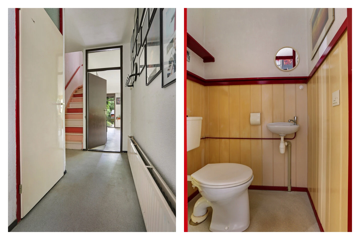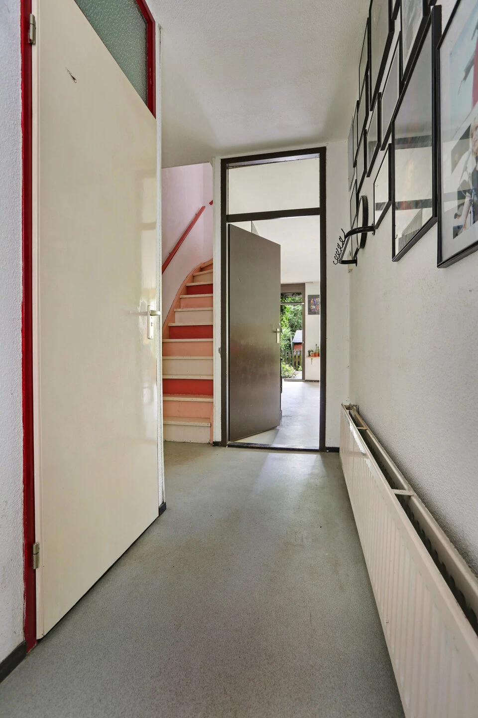 Je betreedt de woning via de hal. Hier is ook de toiletruimte met fonteintje, meterkast en trapopgang. Aansluitend aan de woning is er een ruime berging. De woonkamer is licht door de ramen aan voor- en achterzijde en de tuin bereik je via een loopdeur. Er is een handige trapkast waar je met gemak je voorraad en de stofzuiger in kwijt kunt.