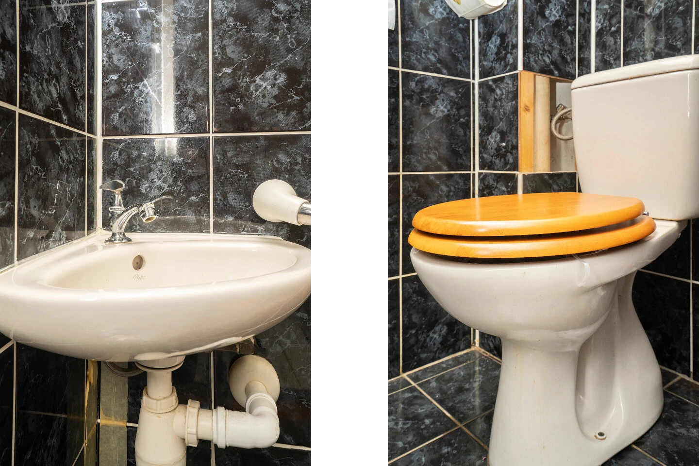 De badkamer is aan de voorzijde gelegen, deze is volledig betegelde en voorzien van een douchecabine met stoomdouche, toilet, en een wastafel met meubel. Praktisch is het raam dat voor extra daglicht en ventilatie zorgt.