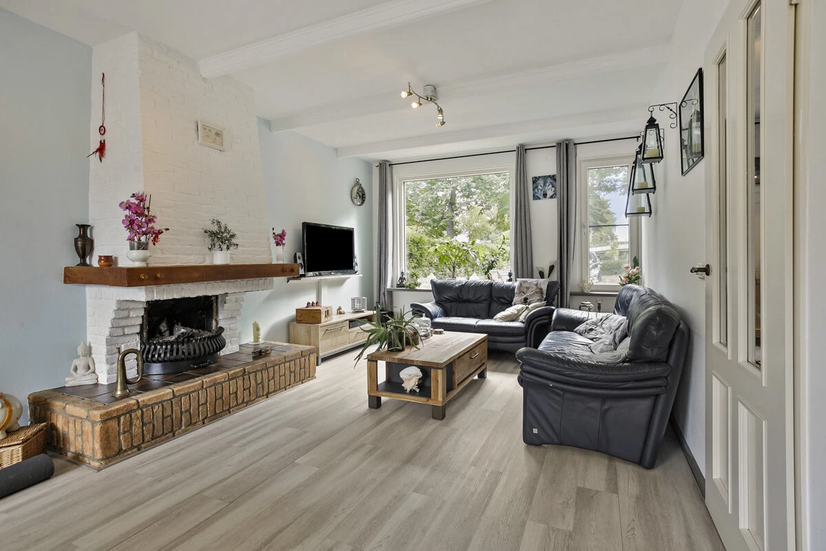 Je betreedt de woning via de entree met meterkast, gevolgd door de ruime hal met toilet met fonteintje en trapopgang naar boven. Je komt in de woonkamer met een mooi authentiek balkenplafond, deze is ruim en voorzien van een open haard (gas). De laminaatvloer en wanden zijn beide in lichte kleurstelling. Vanuit de open keuken is er een loopdeur naar de tuin.
