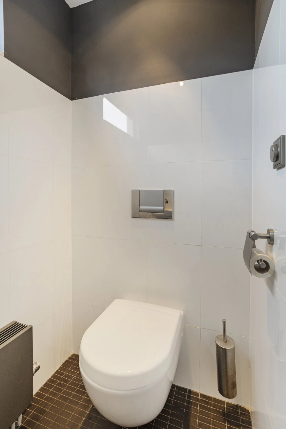 De badkamer verdient nog wat liefde en aandacht, deze is voorzien van een bad met douche, wastafel, tweede toilet en radiator. Deze is wel van alle gemakken voorzien.