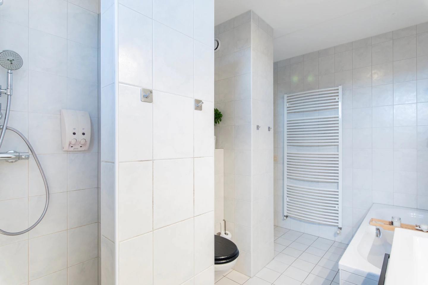Via een vaste trap komt u uit op de overloop van de zolder, 2 ruime slaapkamers en een berging waar de witgoedaansluitingen te vinden zijn. Achter de schotten van een van de kamers kunt u al uw spullen netjes uit het zicht op bergen.