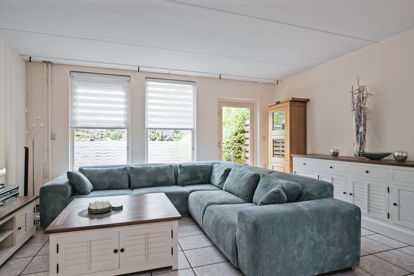 Indeling: entree, hal, net toilet en toegang tot de ruime woonkamer met mooi zicht op de leuk aangelegde achtertuin. Aan de straatzijde ligt de nette open keuken met apparatuur en speelse eetkameropstelling.